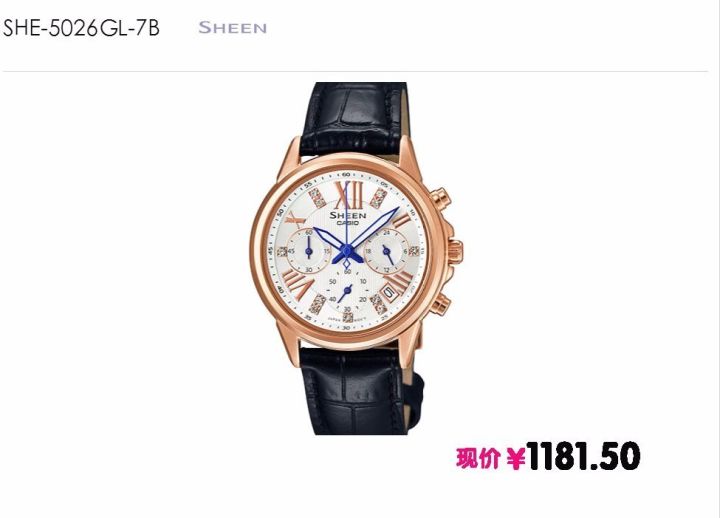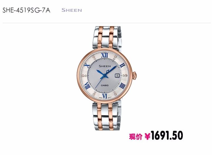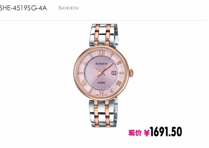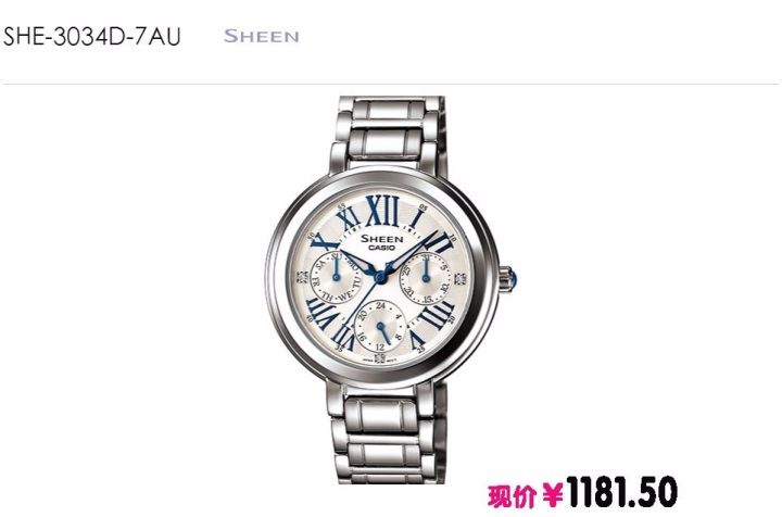 SHEENSHEEN是卡西欧旗下女性金属指针腕表品牌 ,其腕表有Elegant(奢华系列)、Shinning(璀璨系列)和Smart(简约系列)三种系列,它自诞生起即着“让女性绽放知性之美”的品牌哲学,是一款为都市女性带来充满自信魅力的时尚腕表。 具备电波接收、太阳能动力、秒针位置自动校正和独立日期显示窗/世界时间四大功能,展现施华洛世奇水晶刻度、蓝宝石玻璃镜面的时尚设计风格。其中国大陆代言人为中国好声音人气学员丁丁。