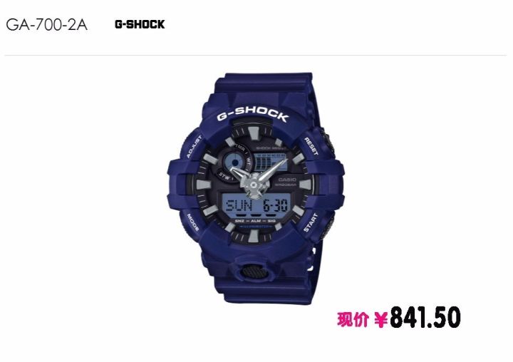 CASIO手表的品牌之一,具有傲人的强悍经用、防水等特征。SHOCK是“冲击”的意思,在医学上是“休克前面的”,G代表重力gravity。