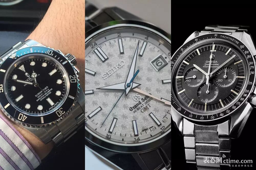 奕:Rolex的无日历黑水鬼114060,Grand Seiko的钢链GMT,Omega的精钢Speed Master无背透42mm。