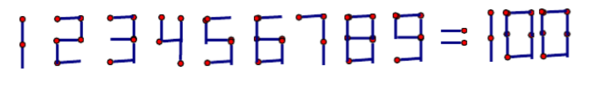 2、 用4根火柴棒来分别表示一些加减运算符号,然后把这4根火柴棒放到数字1到9中间去,使最终的运算结果等于100
