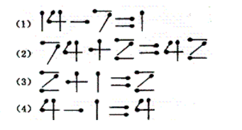 4、下面是一些错误的等式,你能只移动两根火柴使下面的等式成立吗?