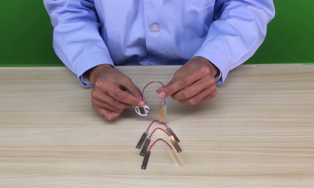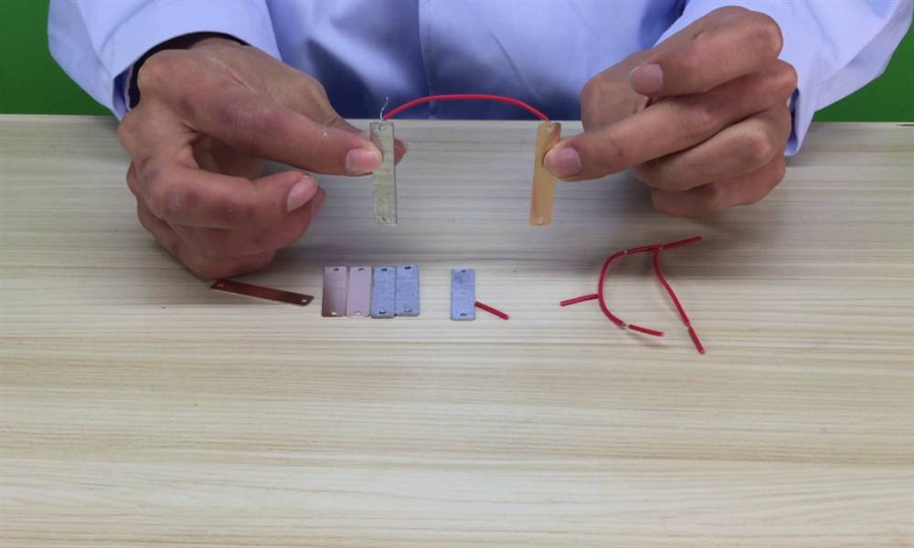 2、导线的一头连接铜线一头连接锌片~![]()