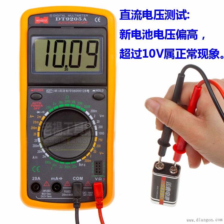 首先将黑表笔插进“com”孔,红表笔插进“VΩ”。把旋钮选到比估计值大的量程(注意:表盘上的数值均为最大量程,“V-”表示直流电压档,“V~”表示交流电压档,“A”是电流档),接着把表笔接电源或电池两端;保持接触稳定。数值可以直接从显示屏上读取,若显示为“1.”,则表明量程太小,那么就要加大量程后再测量工业电器。如果在数值左边出现“-”,则表明表笔极性与实际电源极性相反,此时红表笔接的是负极。