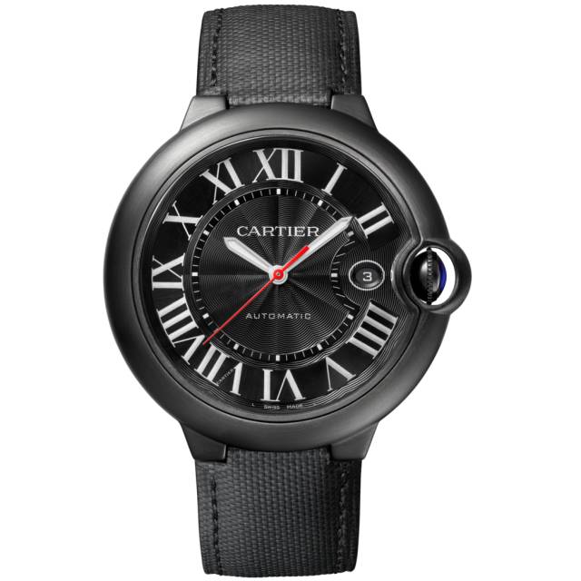 这款蓝气球腕表一改原先款式的设计,首次采用纯黑色调的它有一股神秘与时尚之感。表径42mm,厚13mm,表壳采用ADLC碳镀层(非晶体类金刚石碳镀层)精钢打磨。