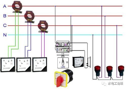 三相通过两个互感器,接三个电表