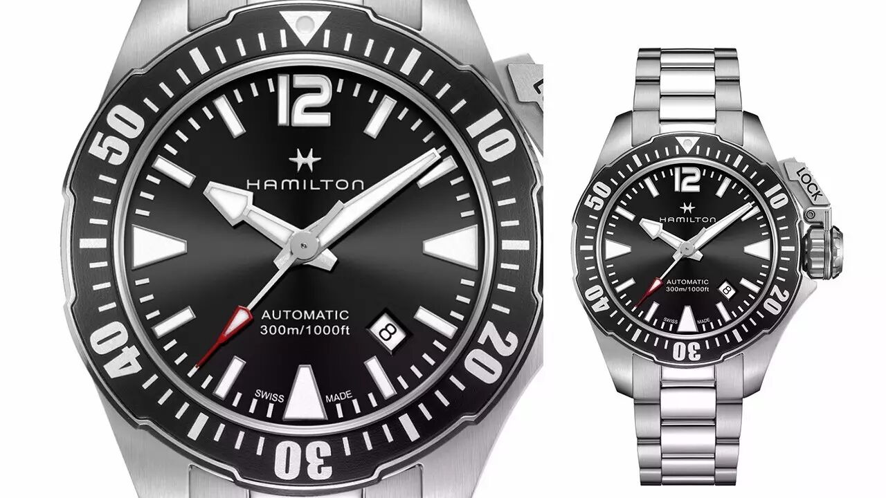 今天介绍的这款是该系列的一款精钢材质表款,尺寸42MM,表冠护桥设计灵感来源于独特的军用水壶 。采用的是汉米尔顿与ETA共同研发的机芯H10机芯,动力存储长达80小时,防水级别300M,无论是陆地还是水中同样实用。