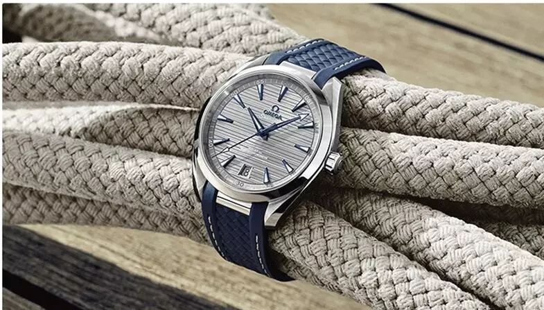 全新海马系列AquaTerra至臻天文台表在设计元素上最显著的变化在于”柚木概念”表盘由垂直纹理变为水平纹理。