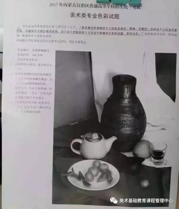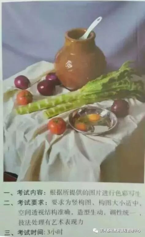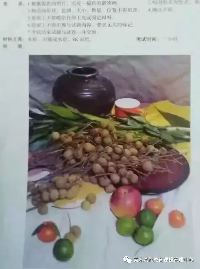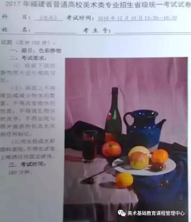 色彩考题:色彩静物(依据图片提供的静物特征及构图完成一幅色彩静物,满分100分)