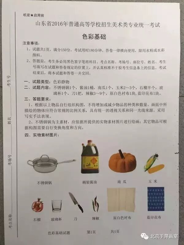 色彩考题:色彩静物(依据图片提供的静物特征及构图完成一幅色彩静物,满分100分)