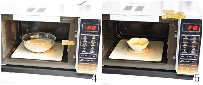 4.放光波炉中高火2分钟,拿出来翻拌一下再高火30秒钟加热成米糕。