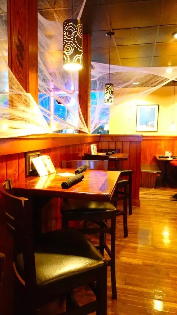 餐厅装饰着木桌椅、木窗棱、木天花,倒挂着几盏藤编的暖黄吊灯,造出复古的民族文化感,墙上挂着一些老照片,可以和孩子一起认识原住民的生活和历史,如果行程安排了查莫洛文化半日游览,会有更深更全面的认识哦~