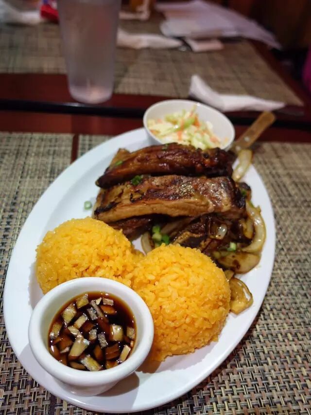 【1】红米饭(Hineksa Agaga)——查莫洛美食最著名的代表,是用由西班牙人引入当地的红胭脂树(annatto)种子浸泡出的橘红色汁液,将生米泡制至红色再蒸煮出来的特色米饭,饭里还会加入洋葱、小豆、蒜粒、烟肉等,口感软糯,味香可口。