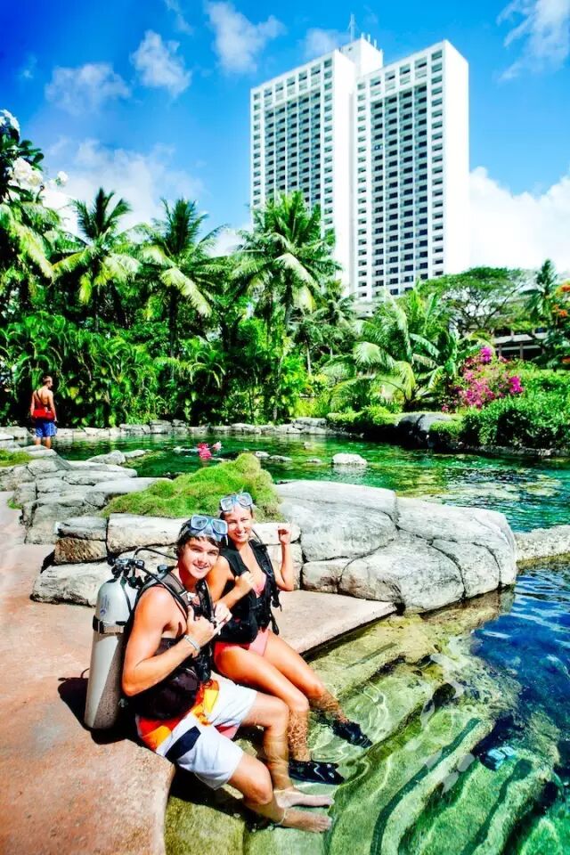 曾被日本《Nikke Trerdy》杂志评为“关岛之最”度假村的PIC太平洋俱乐部,就在关岛杜梦湾海滨酒店区域的正中,有近800间房间,70多项活动设施和7家提供全世界各种美食的餐厅,住客基本可以全免费享用俱乐部的各种配套和服务。