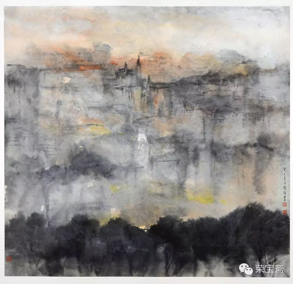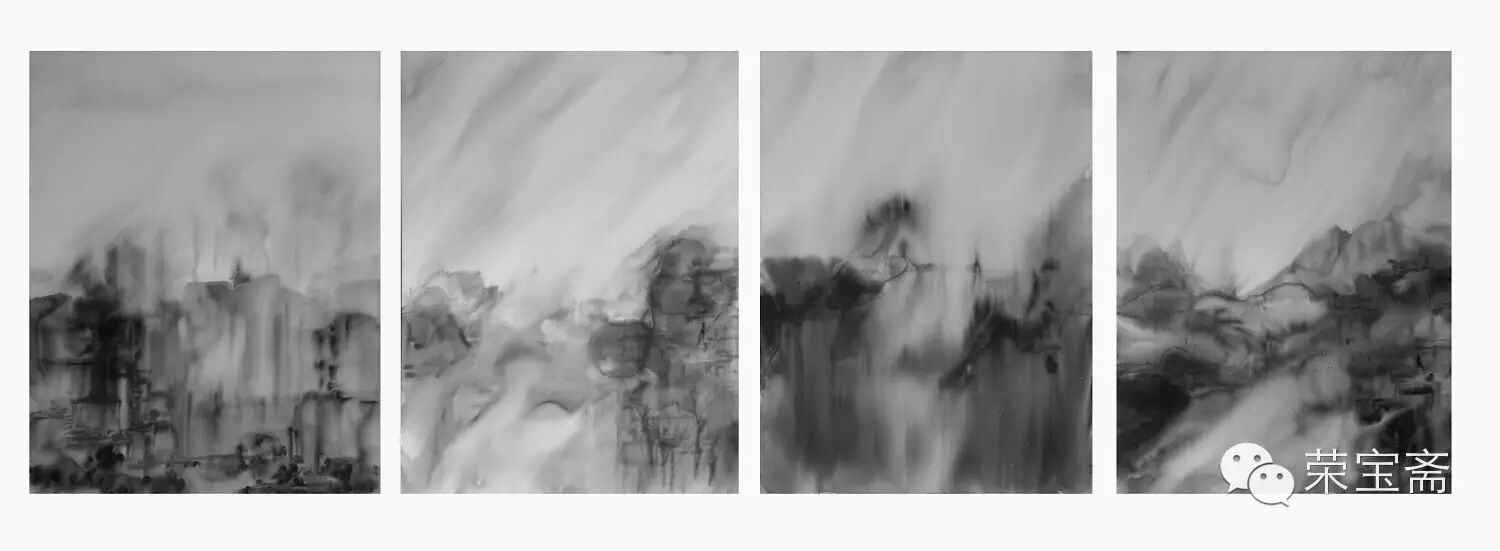 “亞克力抽象”和“水墨寫生”系列是熊海在領略筆墨精微後的“意象性”實踐。熊海利用亞克力創作了一組歐洲印象,隱去具體的形態,僅用色彩和散亂的線條表現歐洲古鎮的肅殺與莊嚴。所繪香港寫生系列,畫家先潑墨于宣紙上,再根據水墨隨機形成的濃淡乾濕進行創作,或添一葉扁舟,或勾一片建築,都是在不起底稿且快速的情況下完成的。熊海的寫生系列作品若非有長期摹古的修養,也不能做到墨分五色,暢快淋漓的效果。