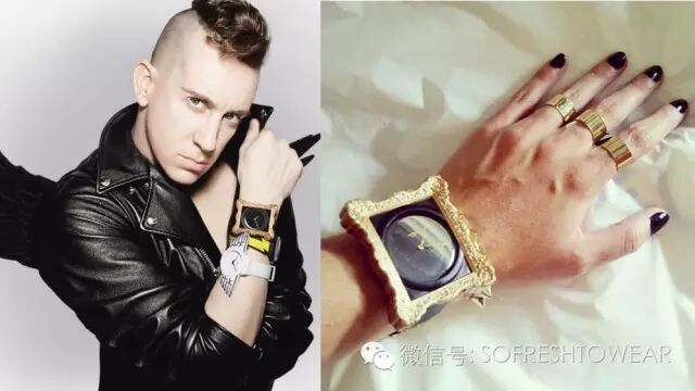 然后,他又创造了混搭理念。现在不是流行混搭手链戒指嘛,当年卖得便宜的Swatch表也是随便混。