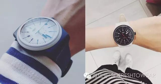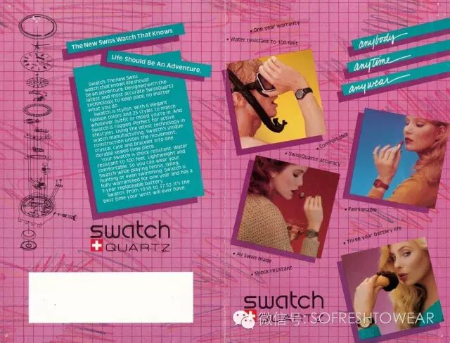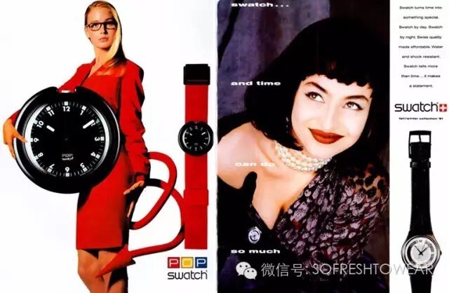 再来,成本降得低就可以任性点,于是一个手表也能走潮牌路子。当年Swatch广告的创意套路,到现在还能在很多潮牌身上看到影子。