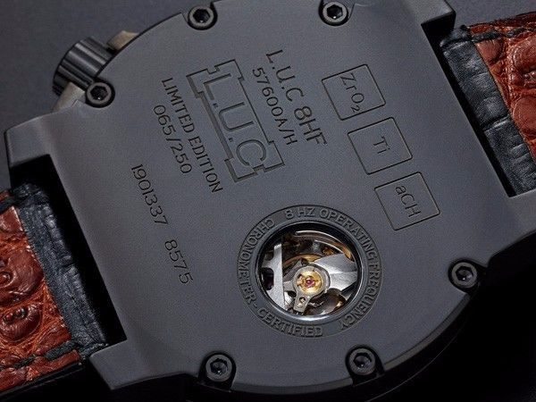 这款看似简单的LUC 8 HF Power Control,所挑战的是高振频这件事。萧邦采用了LUC01-09-L自动上链机芯,能达到57600A/h,延续前作的改革同时再加入动力储存指示。所想要强调的则是表款在采用耗动能的高转速的前提下,还能以单一发条盒达成60小时动力储存的能耐。