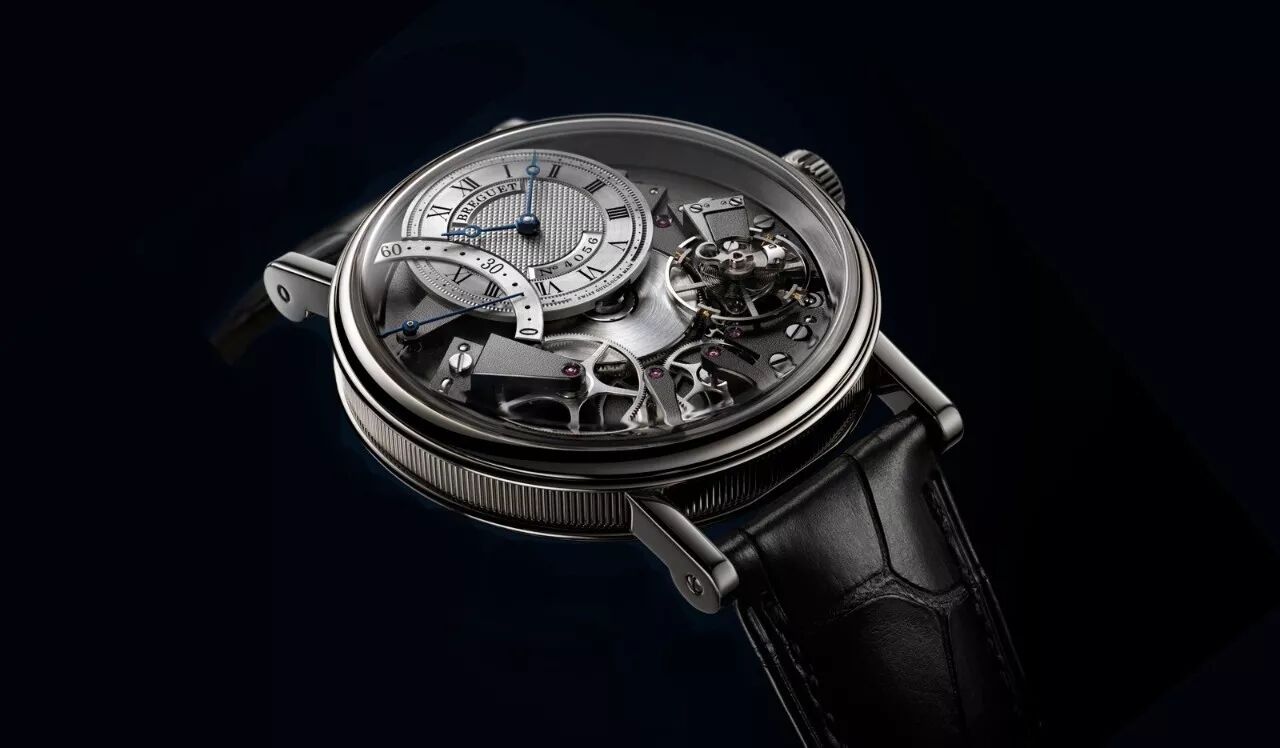 宝玑的Cal.580DR机芯采用了两套相互独立的齿轮系,计时表的摆频为36000A/h每小时,而擒纵装置具有21600A/h的摆频,由此可以显示精确到1/10秒的时间。