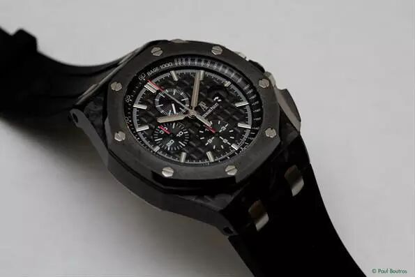 爱彼表锻造碳表壳采用聚酰胺(尼龙)包裹的数千股碳纤维绳,在专门制作的模具中锻造而成。