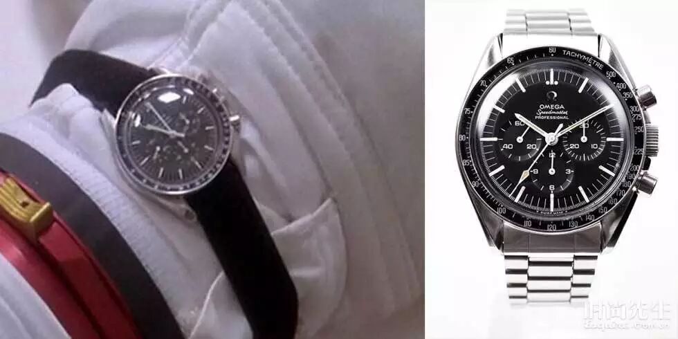 传说中的第一枚登上月球的手表,Omega Speedmaster。1965年,Speedmaster通过一系列的残酷测试,正式成为NASA航天员的官方配备,而在APOLLO 13之中,Tom Hanks饰演的航天员Jim Lovell戴着这枚手表,还给了好几个特写。唯一不同的是,上太空的腕表都会用上特别的表带,就算暴露在真空环境下也能稳定工作,质量过硬啊。