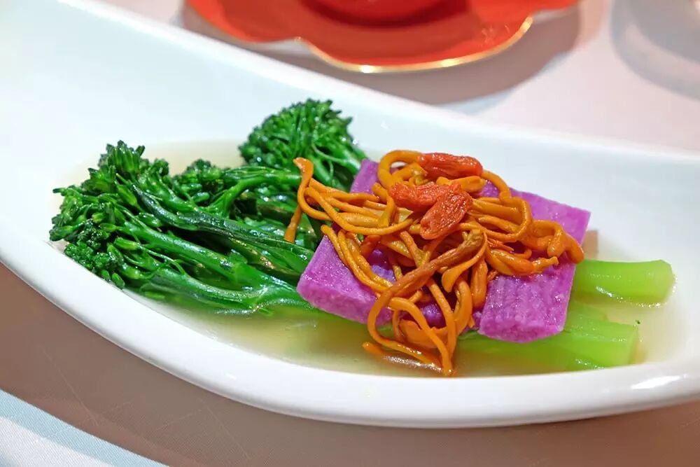 高汤虫草花紫淮山浸长西兰花