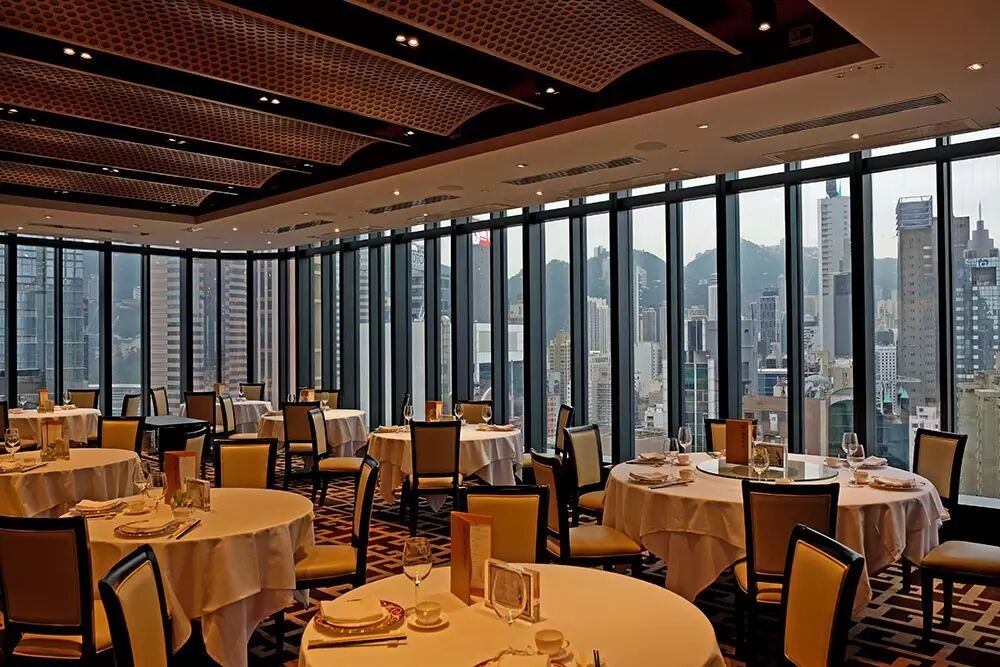 从名字上就能看出这是一个海景的餐厅,坐落在铜锣湾一个高楼的顶层,步入餐厅首先就会被壮丽的城市景观所吸引,转弯向里便是无限开阔的海湾景观,紧凑与开阔两种景观体现了极具港式风格的建筑特征——密和高。