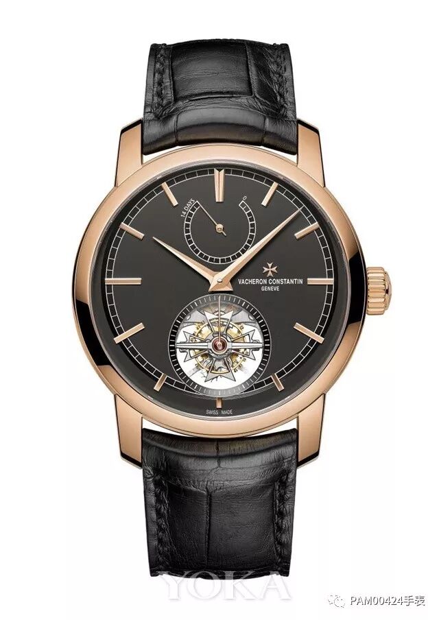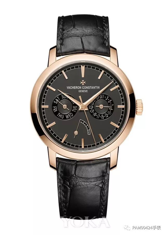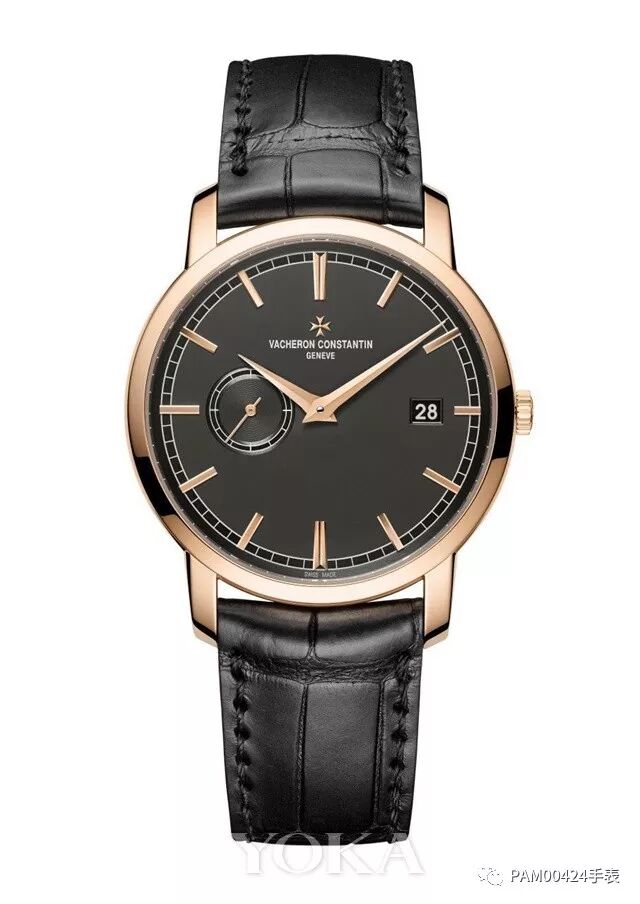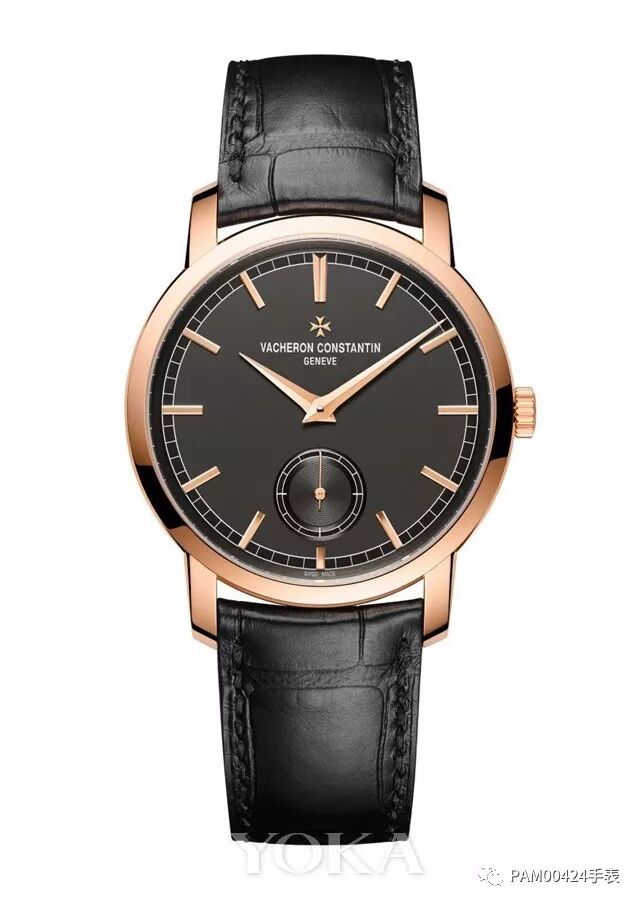 圆形阶梯式表壳、纤细表圈和凹槽底盖;轨道式分钟刻度圈,“batons de Genève”棒状时标和剑形指针: Traditionnelle传袭系列新作将该系列标志性的特色集于一身。18K 5N粉红金的温暖光泽与乳光墨褐色表盘相映成趣,亦与优雅的黑色鳄鱼皮表带完美相配。