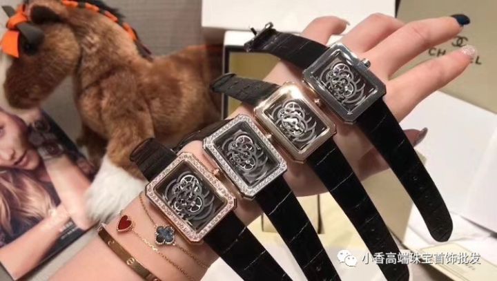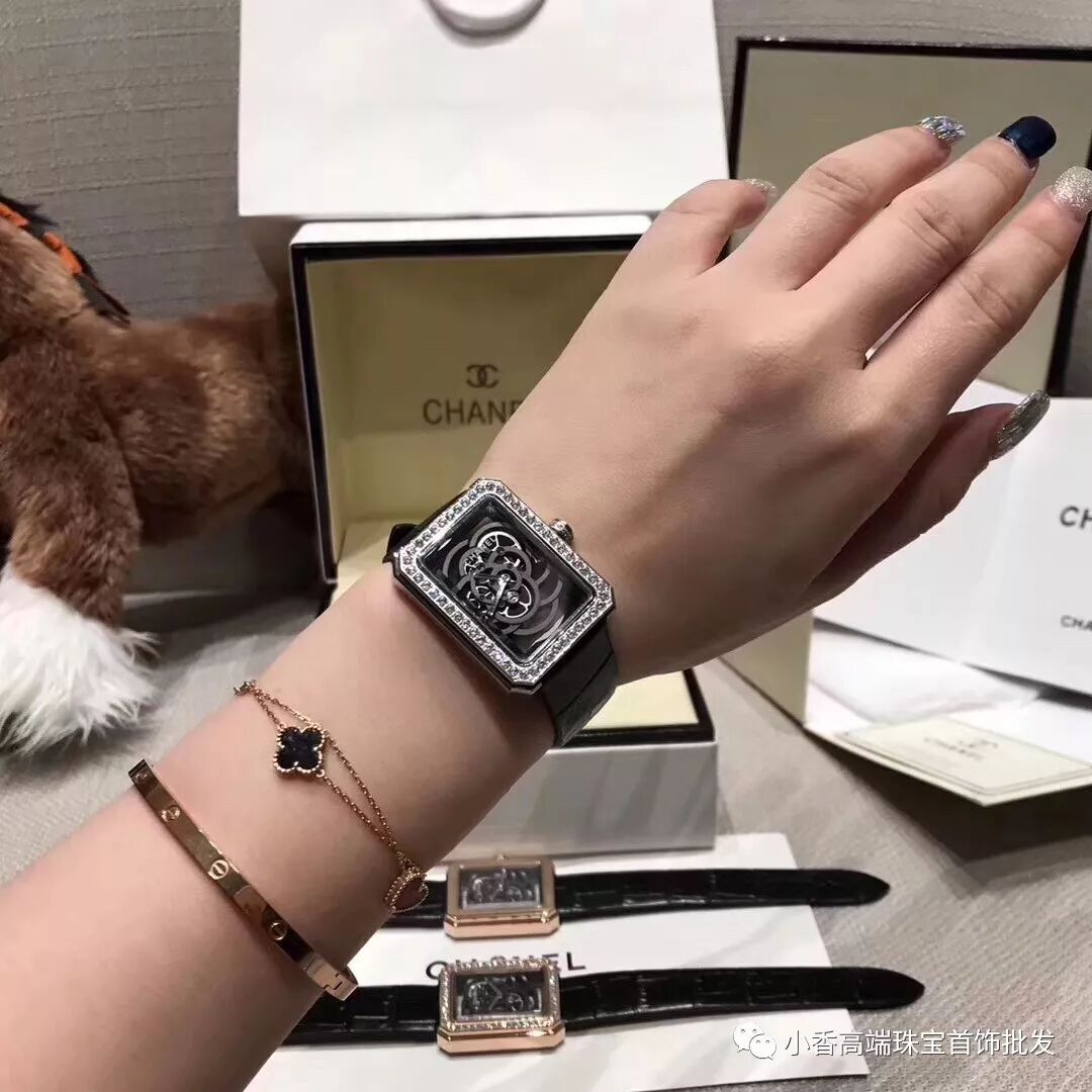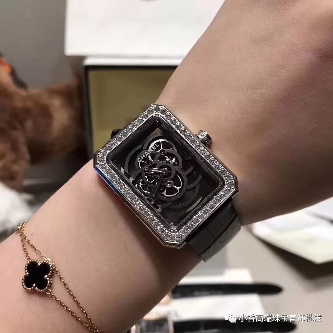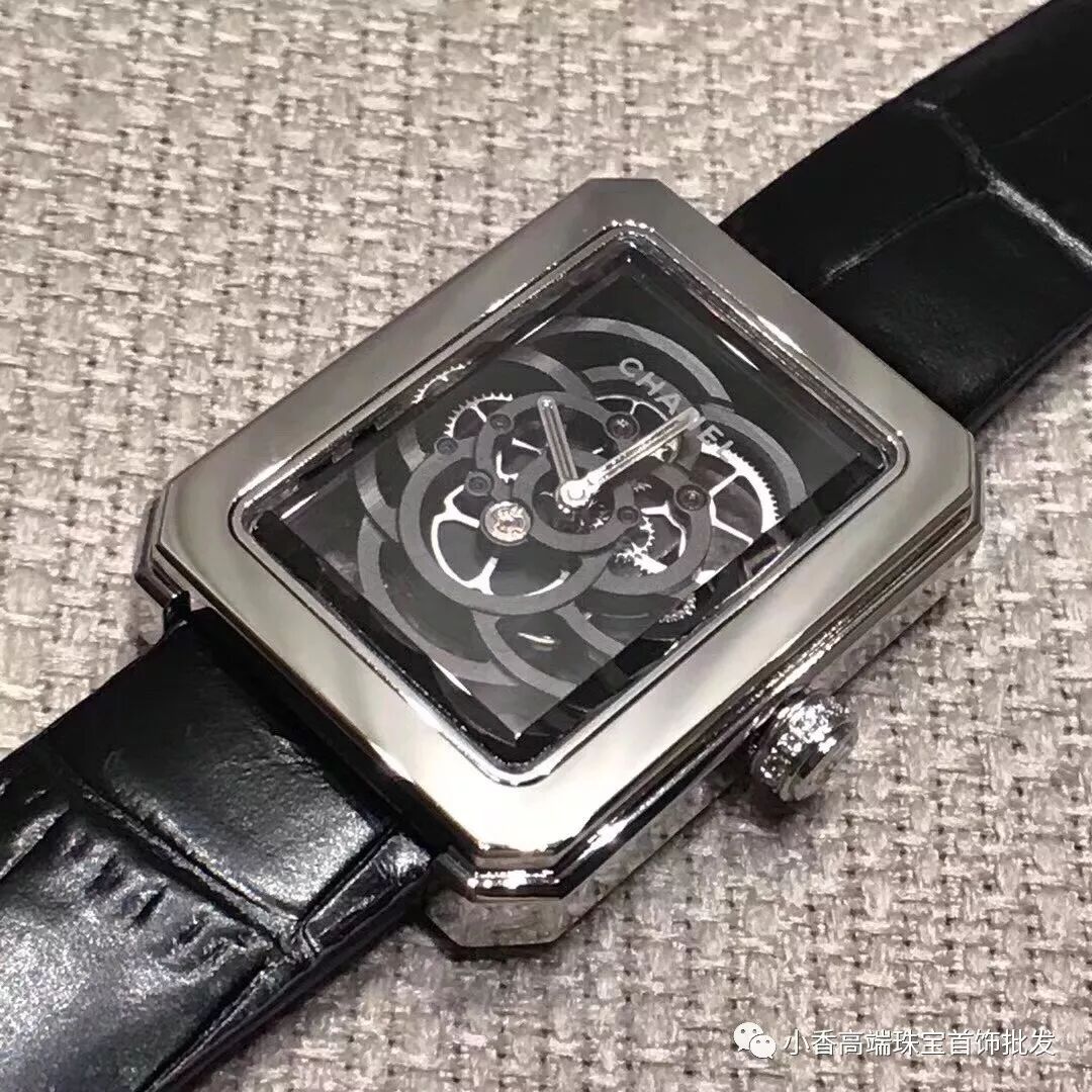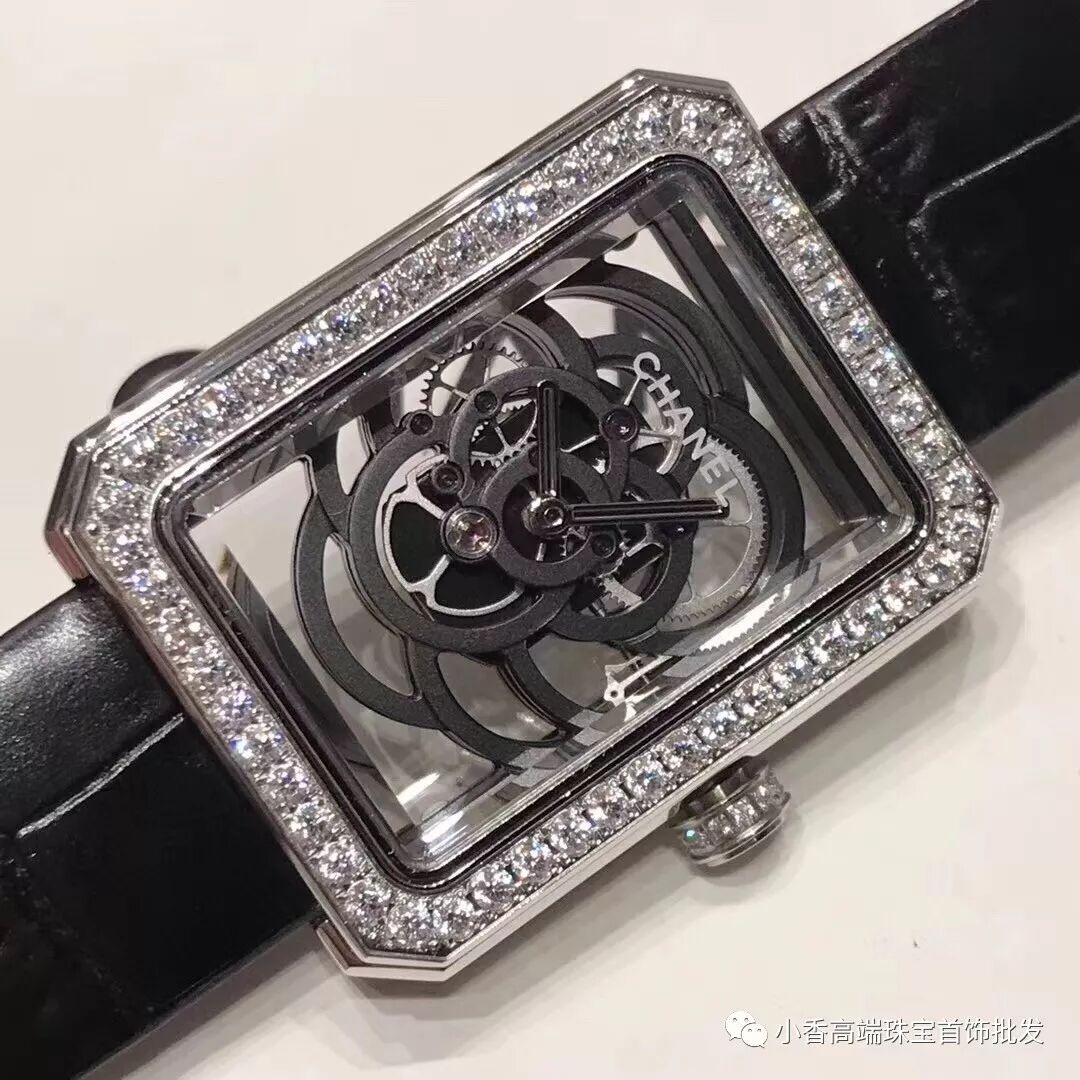 Chanel手表(V号:yangbaohang8)独家实拍香奈儿PREMIERE系列山茶花镂空腕表腕表,专柜高端品质 直径28.5 x 37毫米 蓝宝石玻璃 配备香奈儿自制机芯Calibre.2 山茶花花瓣在机芯上曼妙舒展 Chanel品牌经典图腾与高级制表技艺相结合 表壳采用时尚之都巴黎芳登广场的轮廓 几何镂空的机芯勾勒出山茶花的典雅 黑色的力量一如可可·香奈儿所说 可以横扫万物 这枚闪耀着钻石光芒的黑色 Première 镂空山茶花腕表的迷人魅力便深不可测!