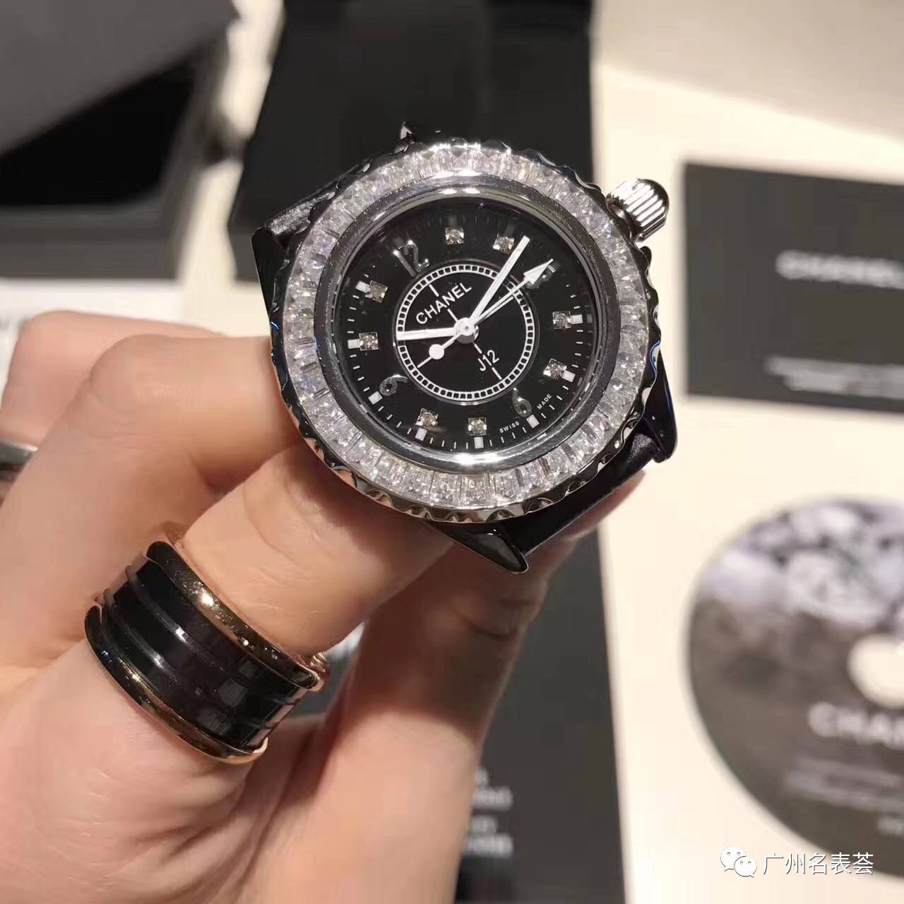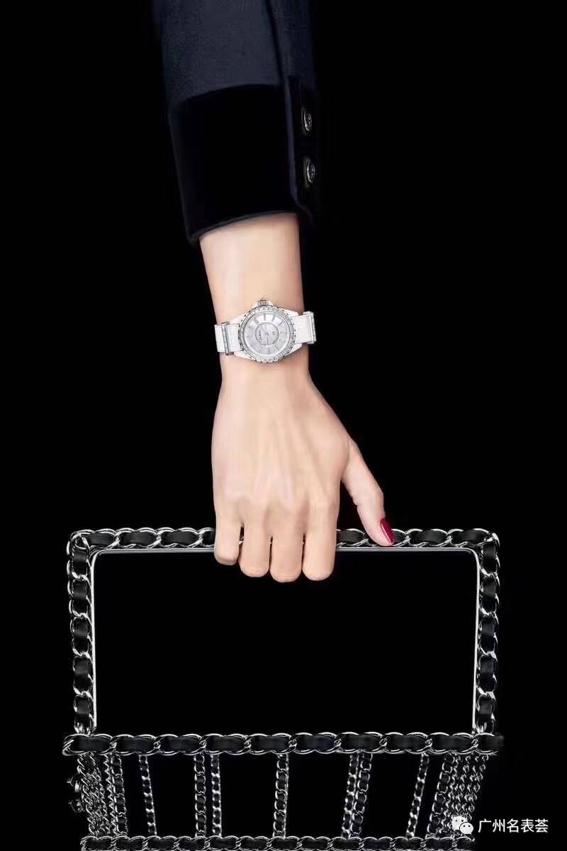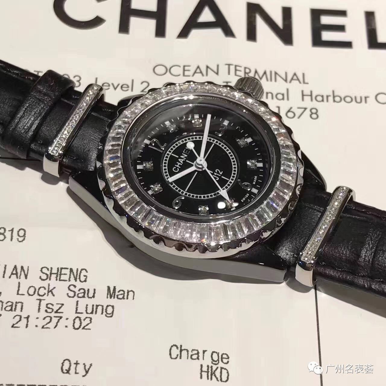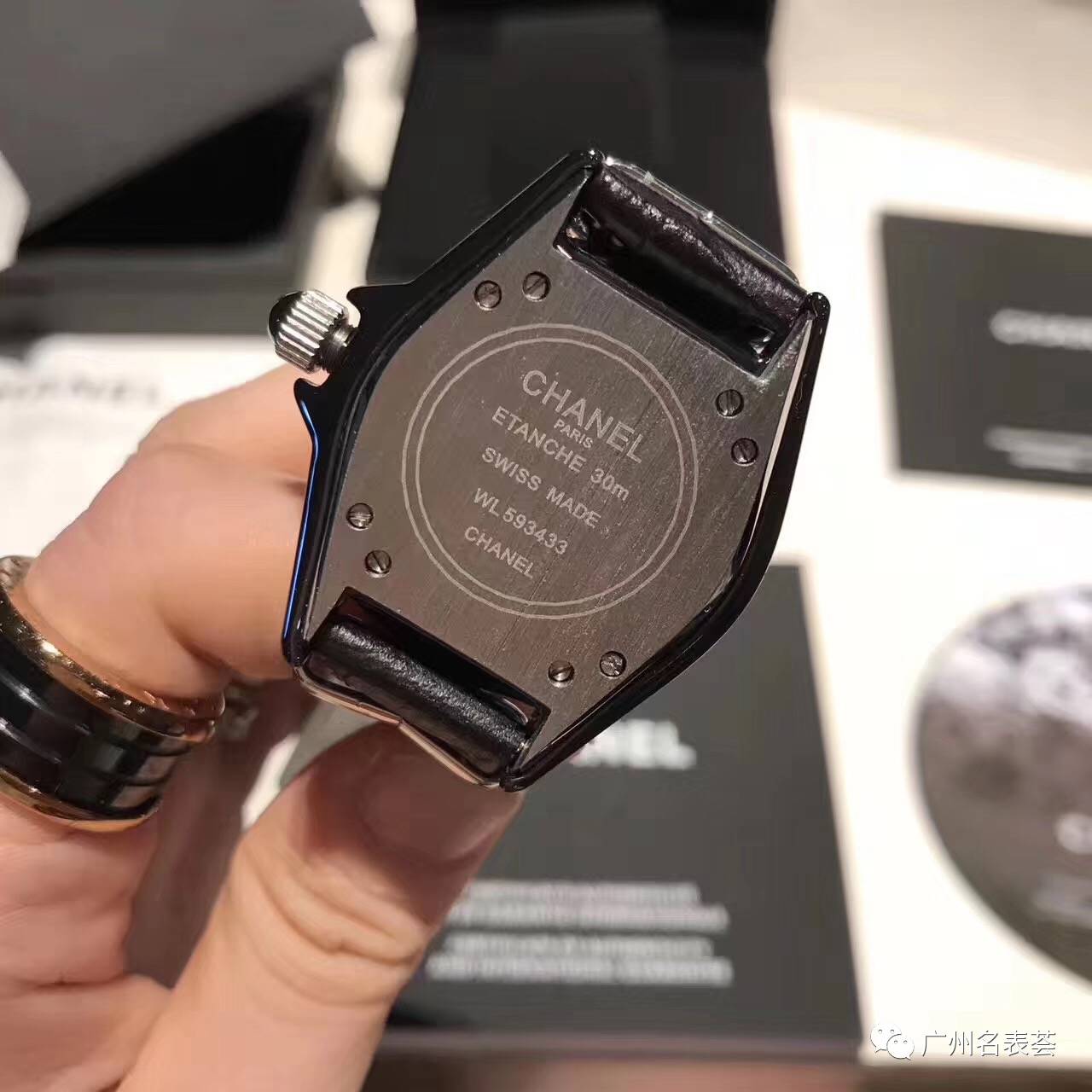 全新推出的香奈儿J12 INTENSEBLACK腕表完全以黑色高科技精密陶瓷打造,镶嵌方钻表壳与水晶表盘。尺寸:33mm,进口石英机芯,矿物质水晶玻璃,原装针扣设计,全进口牛皮表带。