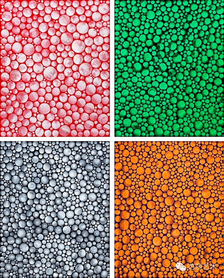 草间弥生《圆点的积累;绿之季节;圆点的积累——及夕照》,压克力画布(共四件),每幅:91 x 72.7 cm,估价:HK$5,000,000-7,000,000 US$641,000 -897,400