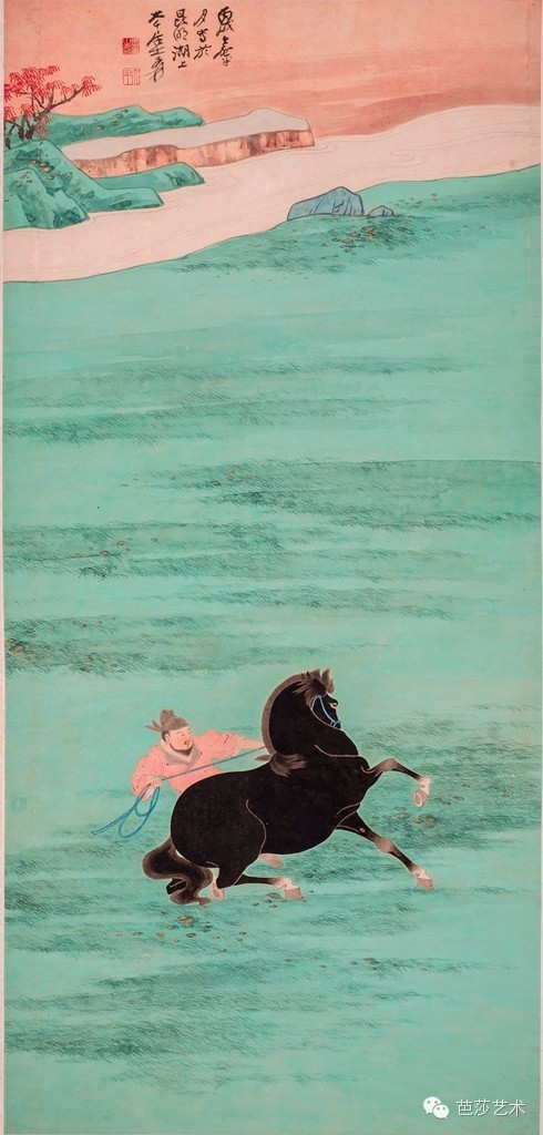 张大千《唐人控马图》,设色纸本立轴,97 x 45 cm,1946年,估价:HK$7,500,000 – 8,500,000 US$961,500 – 1,100,000