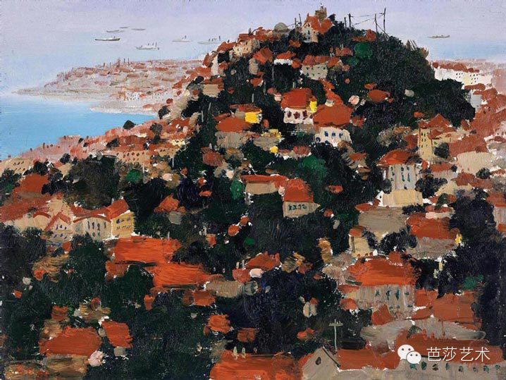 吴冠中《滨海城市 (青岛)》,油彩木板,46 x 61 cm,1975年,估价待询