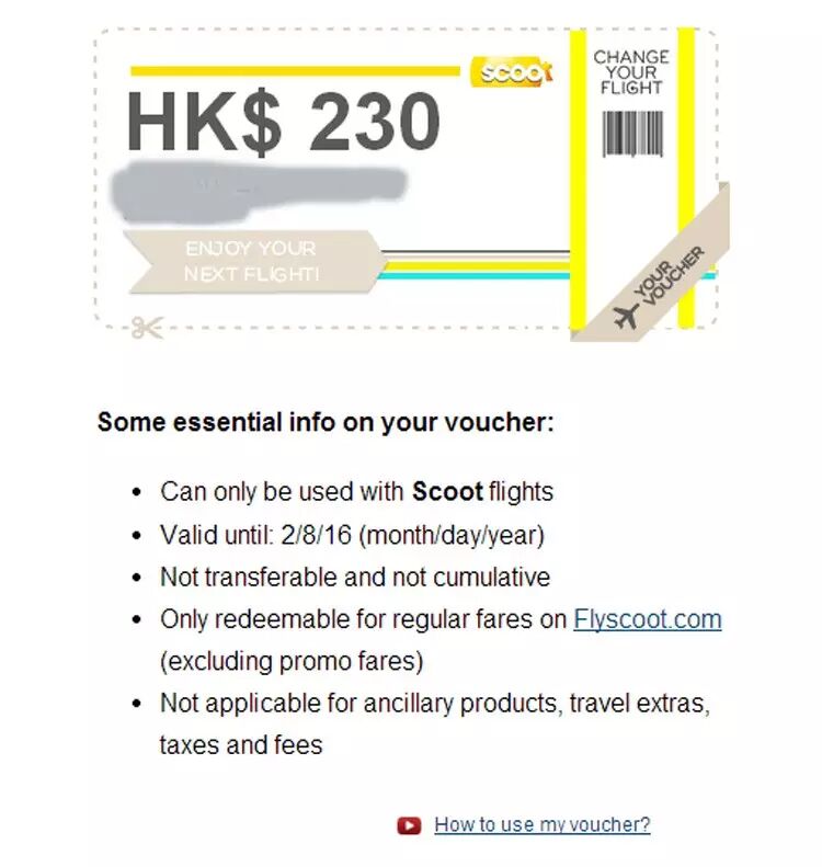 这有点心理压力的啊。如下图。你若是拿到,你可以在下一次购买SCOOT的机票时,抵用。