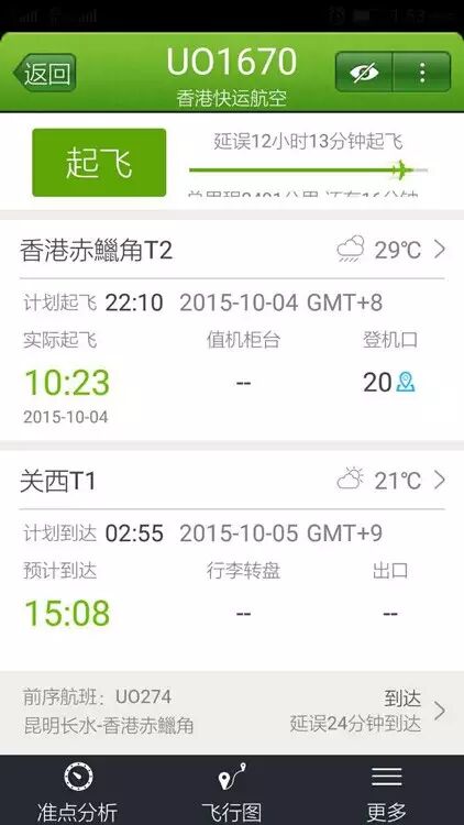 10月4日,香港快运航空UO1670航班,香港—日本大阪,原定22点10分起飞,结果延误至10月5日早上10点23分起飞,总计延误12小时13分钟!!