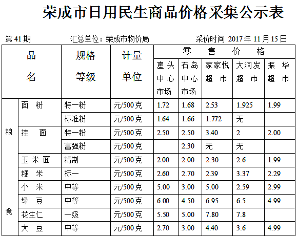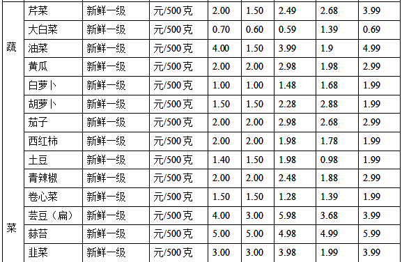 荣成市物价局为服务百姓菜篮子,跟踪市场价格信息,综合数据资料,于11月15日发布市区菜市价格,以供市民参考。