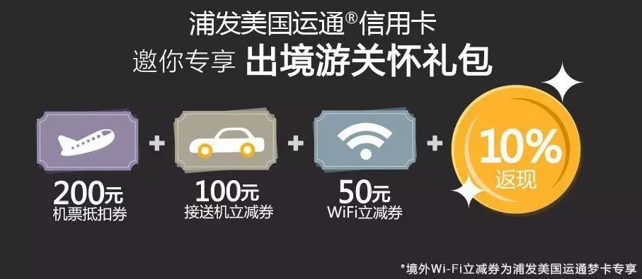 凭优惠券刷浦发银行美国运通信用卡,在香港、澳门、日本、新加坡及美国200多个商户,享受10%的返现礼遇。