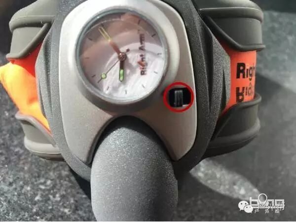 护腕上方设计有日立防水电子表或指南针,我拿到这款是电子表样式的,侧面有一个按钮,我使用手机针试了试调节,完全按不动,至今没找到在哪里调节电子表时间,但电子表的时间一直是准确的。