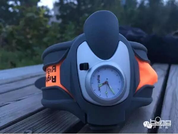 救生护腕不同于市面上其他的救生设备,其在保证涉水自救功能外,外观上面做了非常大的创新,把一件笨重穿在身上的马甲,变成了一款可以戴在手上的护腕,同时增加了电子表和指南针等功能。