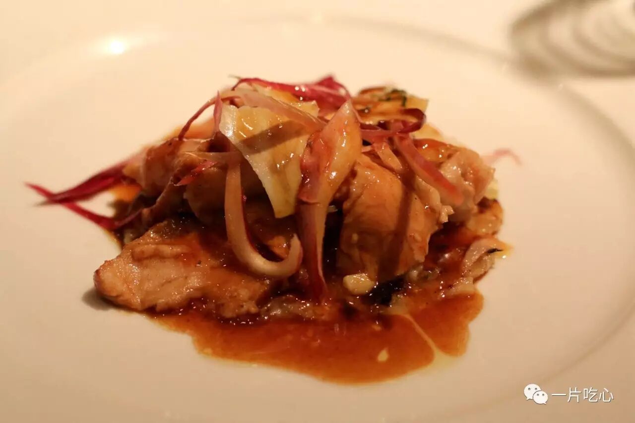 春天的小牛肉嫩得好似白肉,与菊苣和土豆片做简洁的配搭。