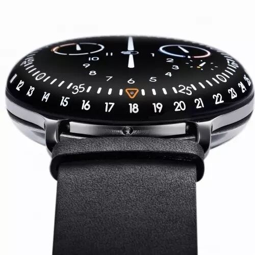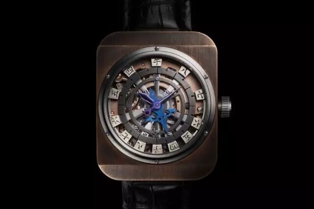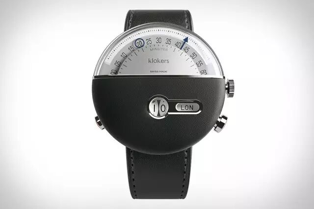 Klokers新款Klok-02,造型怪异的它其实是一款跳时世界时腕表。使用的是Soprod SOP 813石英机芯。分针、秒针均是逆跳显示,每当显示到60时,之后便由右边调回左边重新开始走时,如此反复。