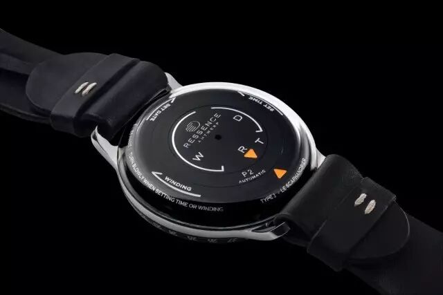Ressence之名由“Renaissance(复兴)”和“Essence(本质)”组成,代表腕表显示时间的全新概念。Ressence最初 以平面转盘替代指针,而Type 3手表连表冠也不见了,整个水晶玻璃表背可以旋转,从而取代表冠功能。更强悍的是当中居然还有一个重力系统令显示可以独立调校:表盘朝上可以调校时间和日期;反过来可以上链。旋动表背可以上链,设定日期只需旋转200°至日期位置即可调节;从无设定位置开始按指定方向旋转,即可调整小时。表内有重力传动系统,只需翻转腕表即可停 止设定。