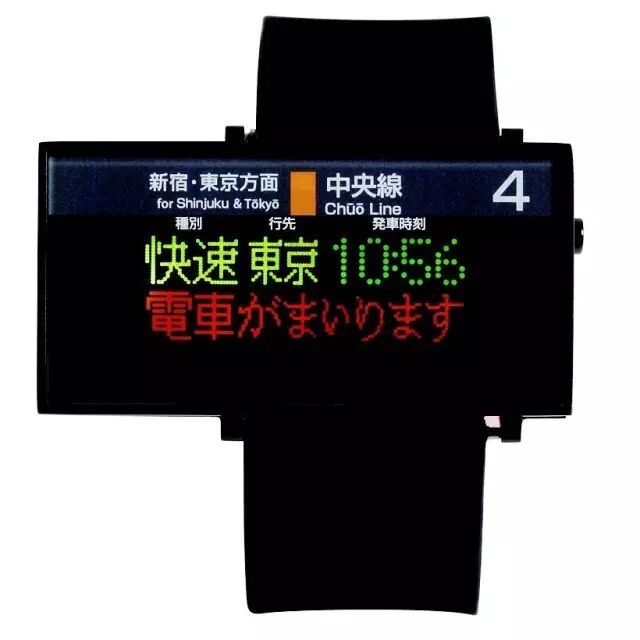 这款手表简单的设计时间和日历,与日本电车的系统结合,可与日本电车的提示时间同步。