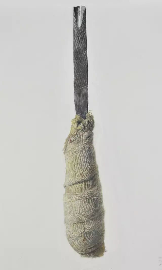 从小我就经常待在爷爷的身边,爷爷特别喜欢手工制品,老人家退休以后就经常摆弄着这些玩意,竹制风筝,雕刻印章,漆雕木雕都不在话下,耳濡目染之下我也产生了极大的兴趣。优秀的手工制作必离不开精心制作的工具,我选的这把锉刀就是爷爷很少离手的一样常用工具。因为长期的使用锉刀外包裹的棉纱布已经变黄了,棉布有着小块小块的红色,刀身带着锈迹斑斑,可刀口却依然很快,磨的很锋利。这把锉刀背后的故事便是爷爷退休生活的缩影,不愿意闲着,属于老一辈的执着,老一辈的工匠精神,传统手工艺不管是少了传统,还是少了精良的自制工具都是不完整的,只有这两样和在一起才会有完整精细美丽的一件件手工艺品。