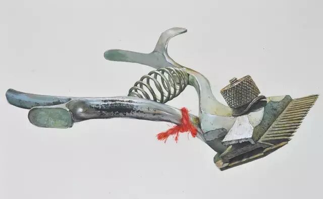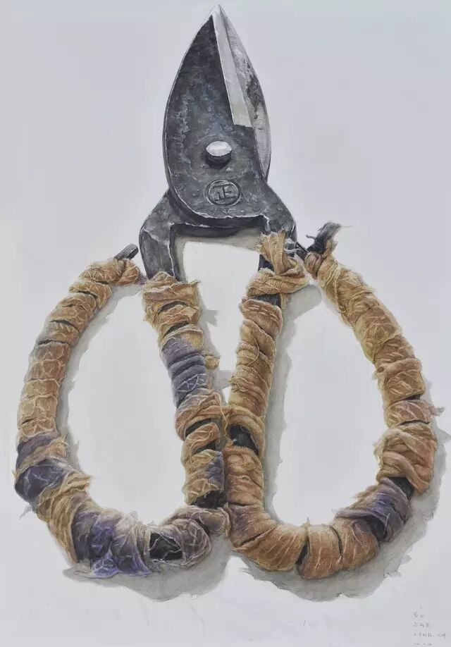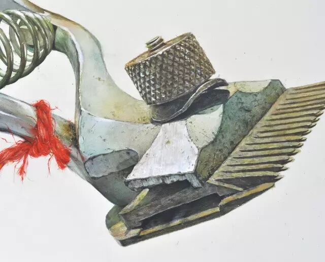 这把推子年纪比我大,在工作第一线辛勤工作了几十年,依然锋利,姥爷在职的时候就用它帮同事理发,现在依旧在发挥它的作用,前些天妈妈给我发短信,告诉我回家一定要把它带回来,姥爷已经好久没用它给自己理发了,他不喜欢理发店。我希望自己选择的对象是有故事的有内涵的,这把理发推子从我的生活中来,从老一辈故事中来,它是我要寻找的,“活”的描绘对象。它的每一处锈迹,每一道或浅或深的划痕,都是有意义的。我虽然没有真正意义上的用过它,但我知道它的故事,熟悉它的形状和质感,习惯它冰冷的触觉和刀口的锋利;我认识它的主人,所以它给我的感觉就像我和姥爷的关系一样亲近。