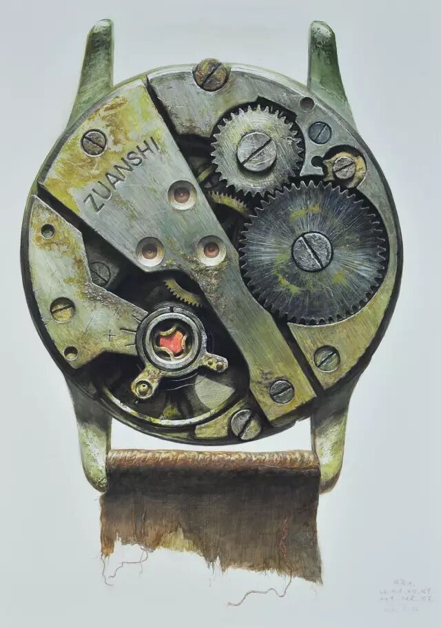 还记得,儿时不慎打碎了爷爷的老手表,表盖弹开,如直刺灵魂深处一般,齿轮随着清脆的声音四处滚动。突然想起,爷爷曾说过每个表里都装着灵魂,但我该怎样把这灵魂交还给他呢?如此,希望这幅破旧的表芯能唤起人们对表匠及传统制表业的记忆,希望这个在暮色中的行业在未来永不消逝。