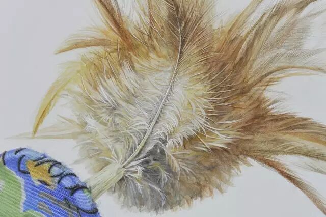 毽子底当中嵌入铜板,再用花布缝上。以前外婆做着毽子,我就在一旁守着,看着羽毛在指间被聚合再展开,一针一线终是将调皮的羽毛规整起来。外婆做完递给我时,羽毛间还存留着外婆手心的温度。于我来说,鸡毛毽子是我童年的回忆,是外婆带给我的乐趣,当然也代表着血浓于水的亲情。在科技日益发展的大时代,真希望传统的手工艺制作能够一代代传承下来,情感也能够通过手间的制作表达出来。