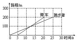 8、如图是一个骑车者与一个跑步者的路程与时间的变化图线,从图像中能够获得的合理信息有: