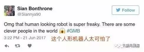 虽然在现场的Susanna和Piers可能不会觉得有什么不妥,他们似乎对机器人很着迷,但是对于坐在电视前的观众来说,这次采访有些令人毛骨悚然,不少观众事后致电BBC表示,Susanna和Piers的采访让他们很迷惑。