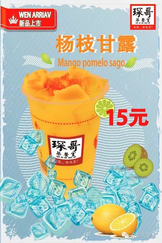 杨枝甘露采用新鲜自然成熟的芒果,大颗粒且多水。西柚同样是精心挑选,果实柔嫩,口感舒适。柚子粒、芒果果肉、芒果果梨,调制在一起,口感极佳。