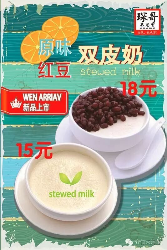 将新鲜的水牛奶煮热,趁热倒在碗里,热气会使鲜奶表层结出奶皮;待到牛奶完全冷却之后,再留皮去奶,在倒出的牛奶里添加细糖和蛋白,搅拌均匀,放到火上去蒸,不久就又可以结出一层皮来,双皮奶就做成了。双皮奶白而滑,香气浓郁,奶味浓,入口香滑,口感细腻,给人一种端庄而温柔的感觉。成型需要15-16个小时,琛哥有原味双皮奶和红豆双皮奶两种。